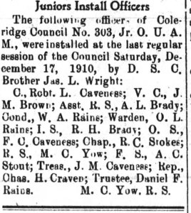 The Stokes family were members of the Deep River Baptist Church in Coleridge where RC served as Church Clerk, Sunday School Superintendent, and delegate to the Baptist Association. When RC relocated to Ramseur, the family joined the First Christian Church.