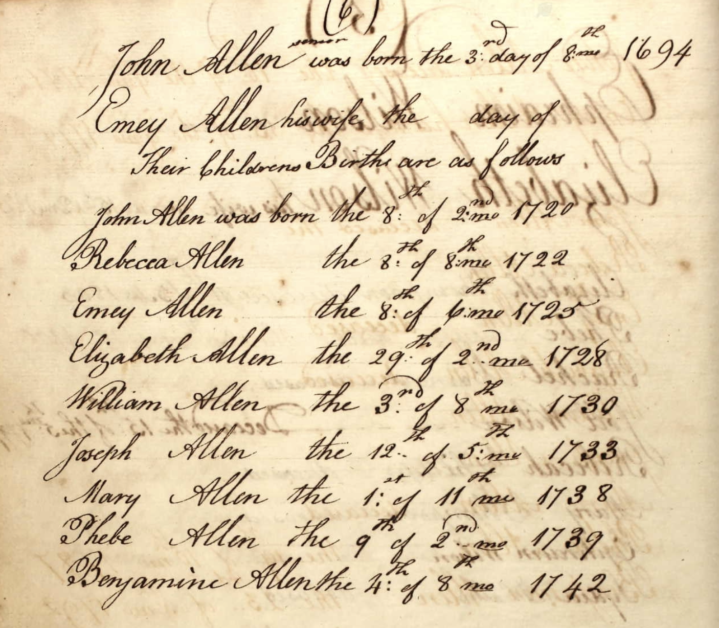 - Emey (anglicized to Amy) Cox married John Allen (1694-1771) and is recorded by Kennett Meeting May 2, 1719, John immigrated to America from Ireland around 1714, but is most likely English. There will be more Cox-Allen marriages in subsequent generations.