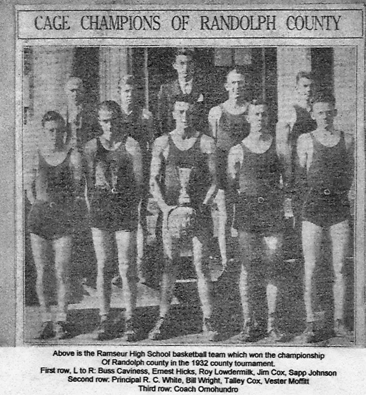 Several of the brothers also competed in track events and basketball. Jim and Talley were members of the Ramseur team that won the 1931 Randolph County basketball tournament sponsored annually by the County athletic association. Cecil won several local track events and competed in college at Elon.