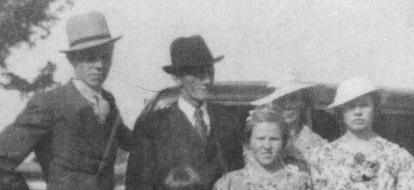 James and Fannie’s children were Madge, James, Kermit, Condon, Oris, Ada, Cletus, Helen, Harold, and Mary Martitia. Note the first son’s name: James “Thomas” Carmac. In the 1920 census, James, Fannie, Madge, James T., Kermit, and Walter (2 mos old) lived on a farm they owned on Coleridge Road. (I cannot find a record for Walter aside from this census and have to assume he died as an infant).