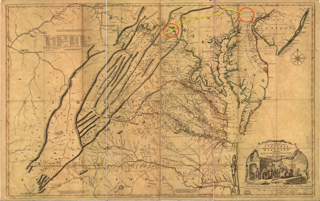 A map of the most inhabited part of Virginia containing the whole province of Maryland with part of Pensilvania (sic), New Jersey and North Carolina, 1755. Library of Congress.