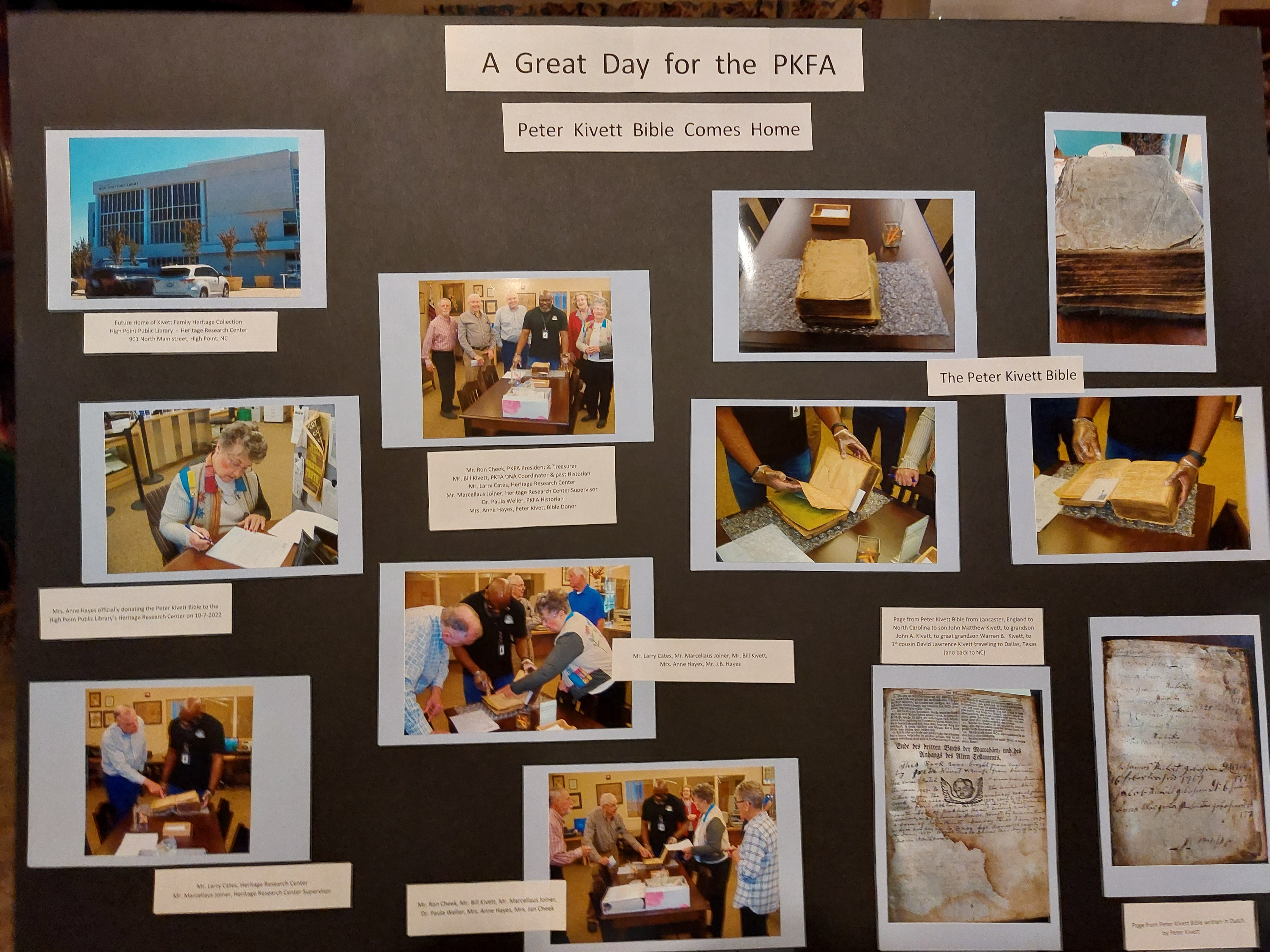 Here are links to Kivett family historian Bill Kivett’s excellent analysis and article on the “coming home” of the Bible.