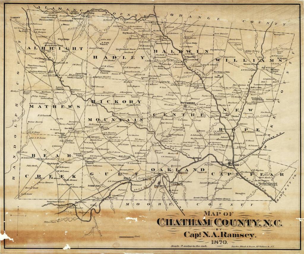 Map of Chatham County, NC (Nathan Ramsey). circa 1870.
